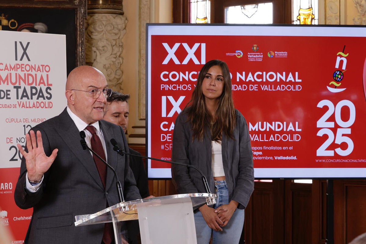Las dos ediciones fueron presentadas hoy por el alcalde de Valladolid, Jesús Julio Carnero, junto con la concejala de Turismo, Eventos y Marca Ciudad, Blanca Jiménez, el presidente de la Asociación Provincial de Empresarios de Hostelería, Jaime Fernández, la directora técnica del Concurso Nacional, Ana García, y el director técnico del Campeonato Mundial, Ángel Moretón.