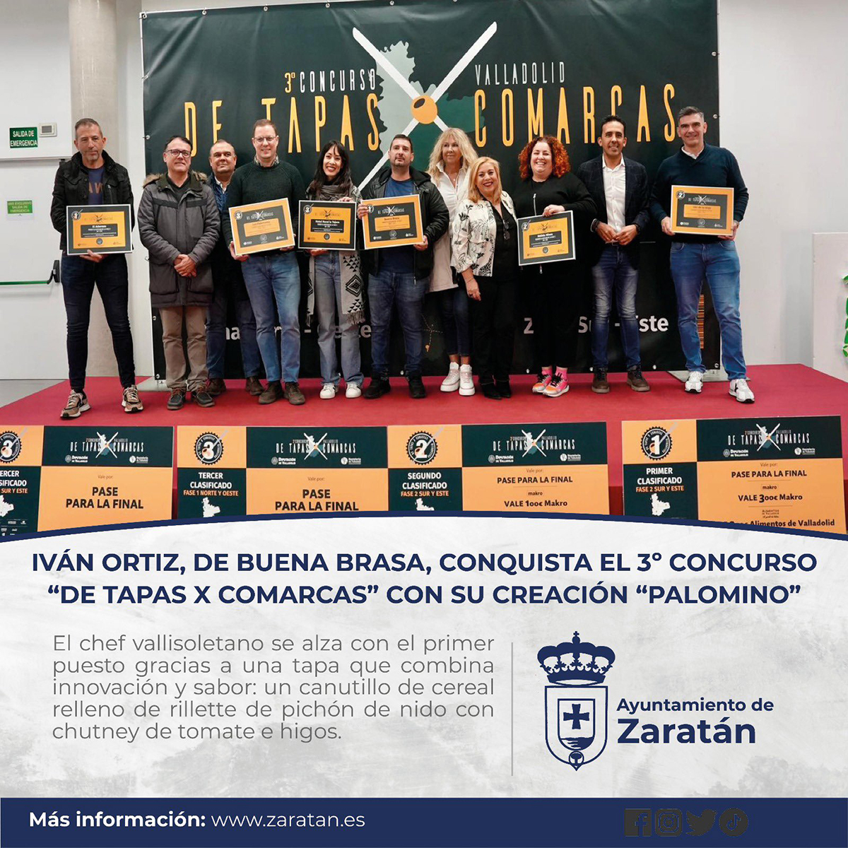 El campeón y subcampeón obtuvieron como premio un trofeo acreditativo y cheques producto por valor de 300 y 100 euros de Makro, y por las mismas cantidades de Alimentos de Valladolid. El tercer clasificado pasa a la gran final, en la cual los tres finalistas serán galardonados con trofeo y cheque regalo de 1.000, 500 y 300 euros, gentileza de Makro; además de otro cheque regalo con las mismas cantidades por parte de Alimentos de Valladolid.