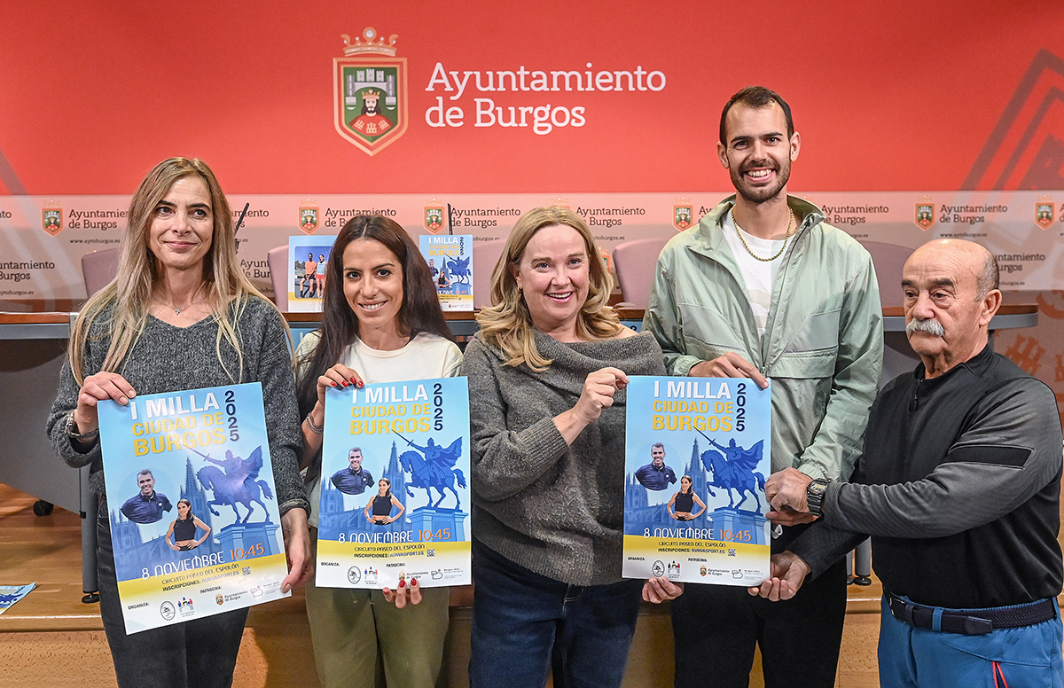 Burgos recupera su milla urbana diez años después de estar considerada la mejor de toda España. La I ‘Milla Ciudad de Burgos’, que se celebrará en el Paseo del Espolón el próximo sábado, 8 de noviembre, está incluida en el calendario de la Federación de Atletismo de Castilla y León y fue presentada hoy por la alcaldesa de Burgos, Cristina Ayala, acompañada por la concejala de Deportes, Carolina Álvarez, el presidente del Club de Atletismo Campos de Castilla, Benjamín Álvarez Furones, así como por los atletas internacionales Dani Arce y Lidia Campo.