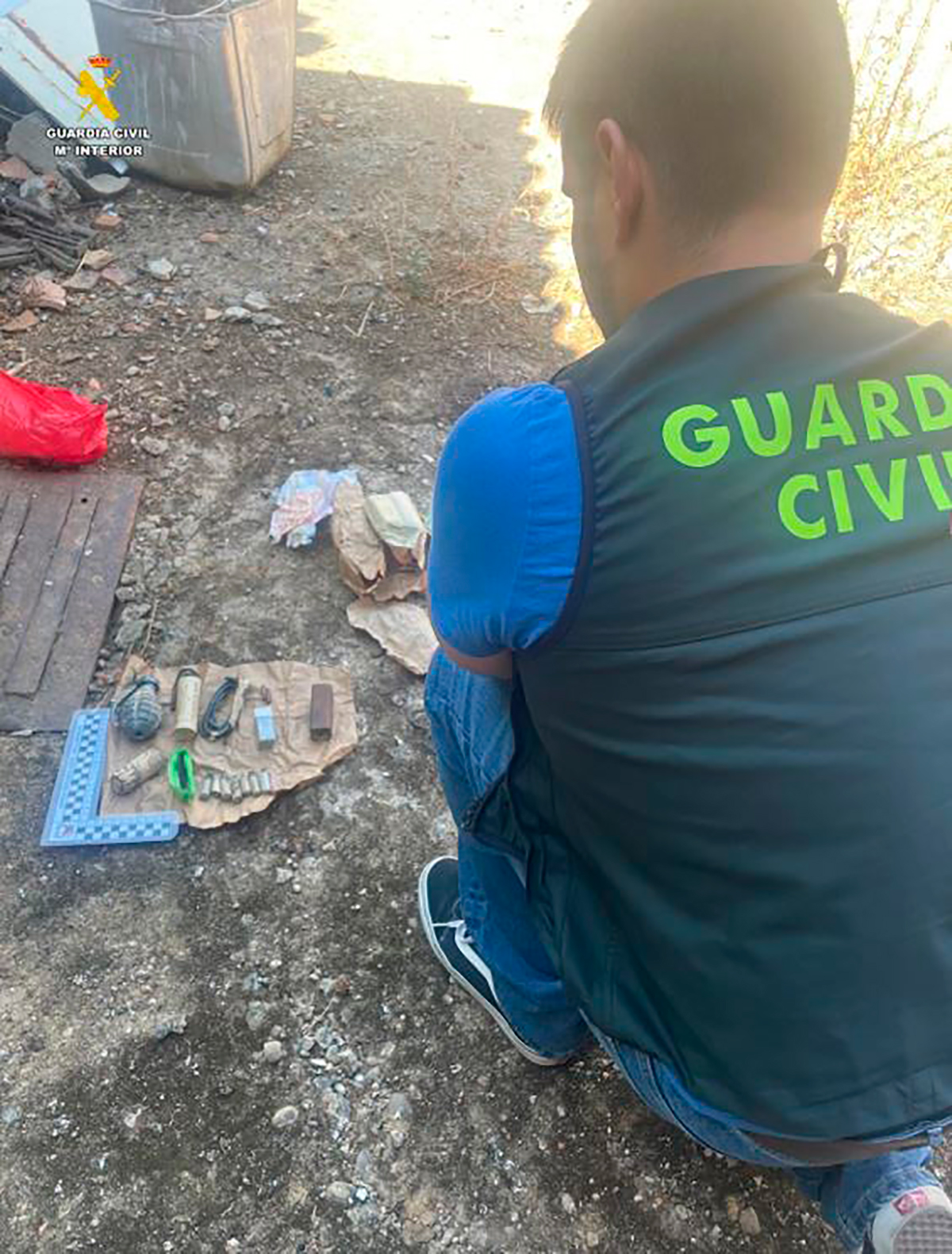 Entre los elementos destruidos se encontraban un petardo cebo de trilita de 97 gramos, un detonador completo pirotécnico con mecha, dos detonadores pirotécnicos de cobre, 1,1 metros de mecha lenta, cinco petardos pirotécnicos de feria de tres gramos, un bote de polvo pirotécnico de 23 gramos y una granada ofensiva de mano simulada.