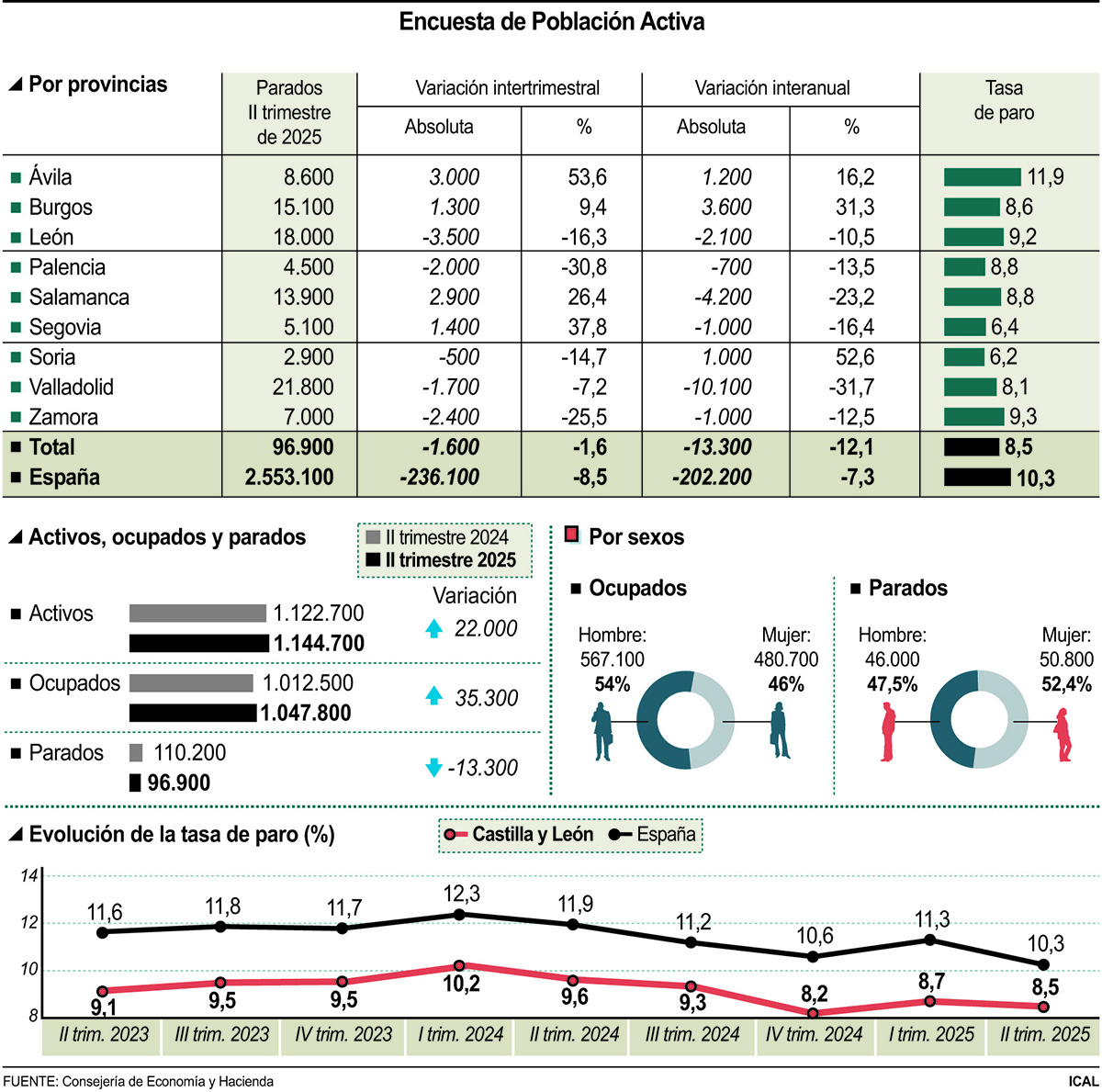 La tasa de paro en Castilla y León se sitúa en el 8,46%, frente al 10,29 % del conjunto del país