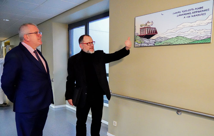 El gerente del Caule destacó que la muestra “contribuirá al objetivo de crear espacios más amables dentro del Hospital”, destacando además la idoneidad de las instalaciones sanitarias para acoger, después de lo vivido en la pandemia, una muestra bajo el título ‘La risa en la mascarilla’.
