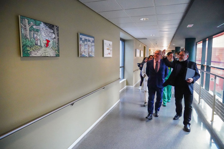 El gerente del Caule destacó que la muestra “contribuirá al objetivo de crear espacios más amables dentro del Hospital”, destacando además la idoneidad de las instalaciones sanitarias para acoger, después de lo vivido en la pandemia, una muestra bajo el título ‘La risa en la mascarilla’.