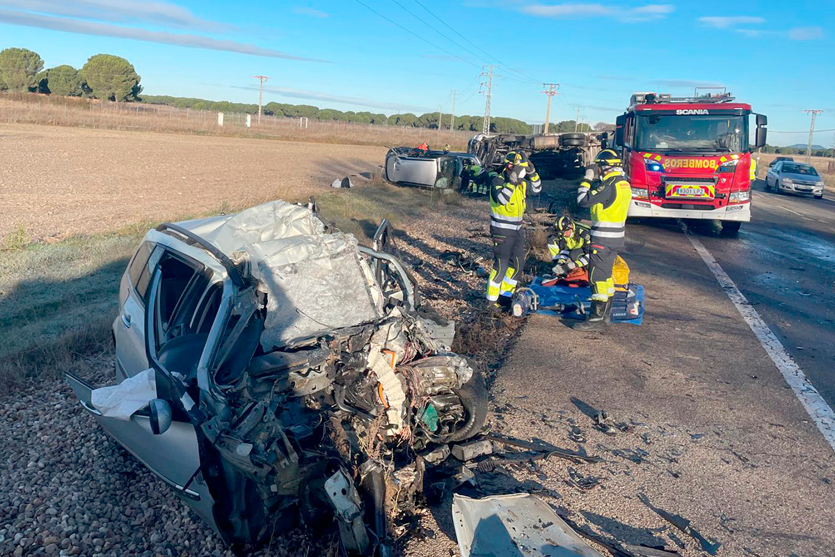 La segunda víctima mortal del puente festivo en las carreteras de Castilla y León tuvo lugar en la mañana de lunes, 9 de diciembre, a causa de un accidente de un camión y dos turismos en el kilómetro 169 de la N-601 en La Pedraja de Portillo (Valladolid).