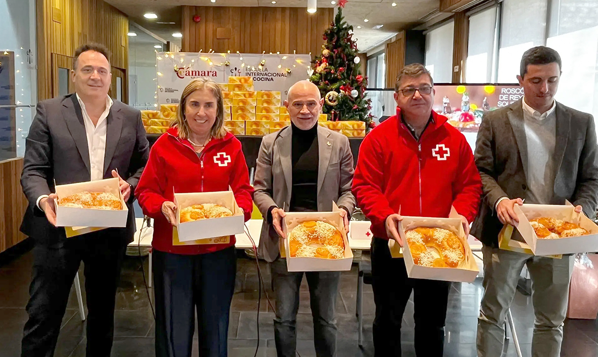 La Escuela Internacional de Cocina de la Cámara de Valladolid demostró un año más su compromiso social con la entrega de 50 roscones solidarios a Cruz Roja, una acción que se celebra ya por sexto año consecutivo y que permitirá que personas sin hogar puedan disfrutar también del tradicional postre del Día de Reyes.