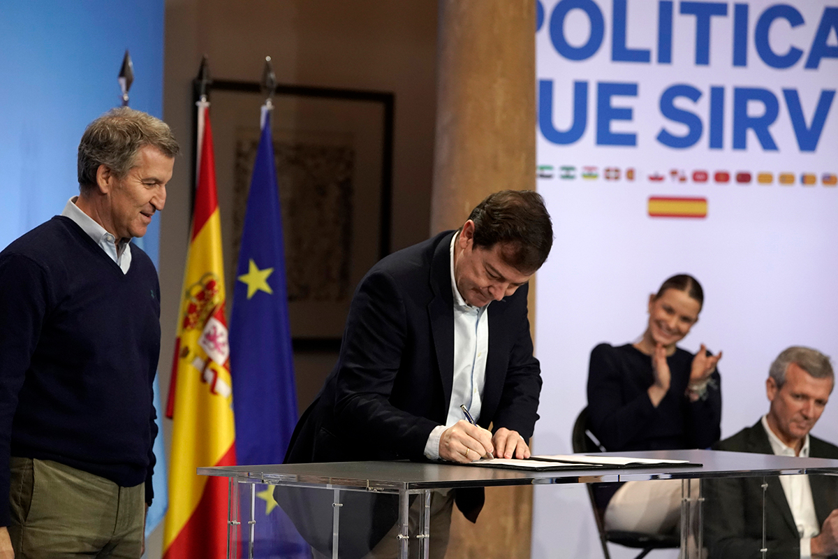 La ‘Declaración de Oviedo’, que consta de diez medidas, fue firmada por los presidentes de las comunidades gobernadas por el PP, entre ellos Alfonso Fernández Mañueco, presidente de la Junta de Castilla y León. A todos ellos, Núñez Feijóo agradeció su trabajo al considerar que la dificultad de una gestión con la oposición del Gobierno central.