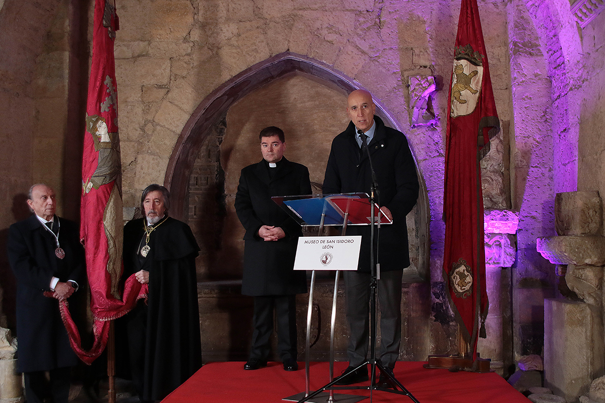 Ambos depositaron una corona de laurel en el Panteón de los Reyes de san Isidoro, donde reposan los restos de de Urraca I, mientras el Orfeón Leonés interpretaba diversas piezas. Una demostración de toques de campaña siguió a las intervenciones del alcalde y el abad que mucho público siguió desde el claustro del recinto, al que asistieron autoridades civiles, religiosas, militares y académicas y que concluyó con el canto del Himno a León.