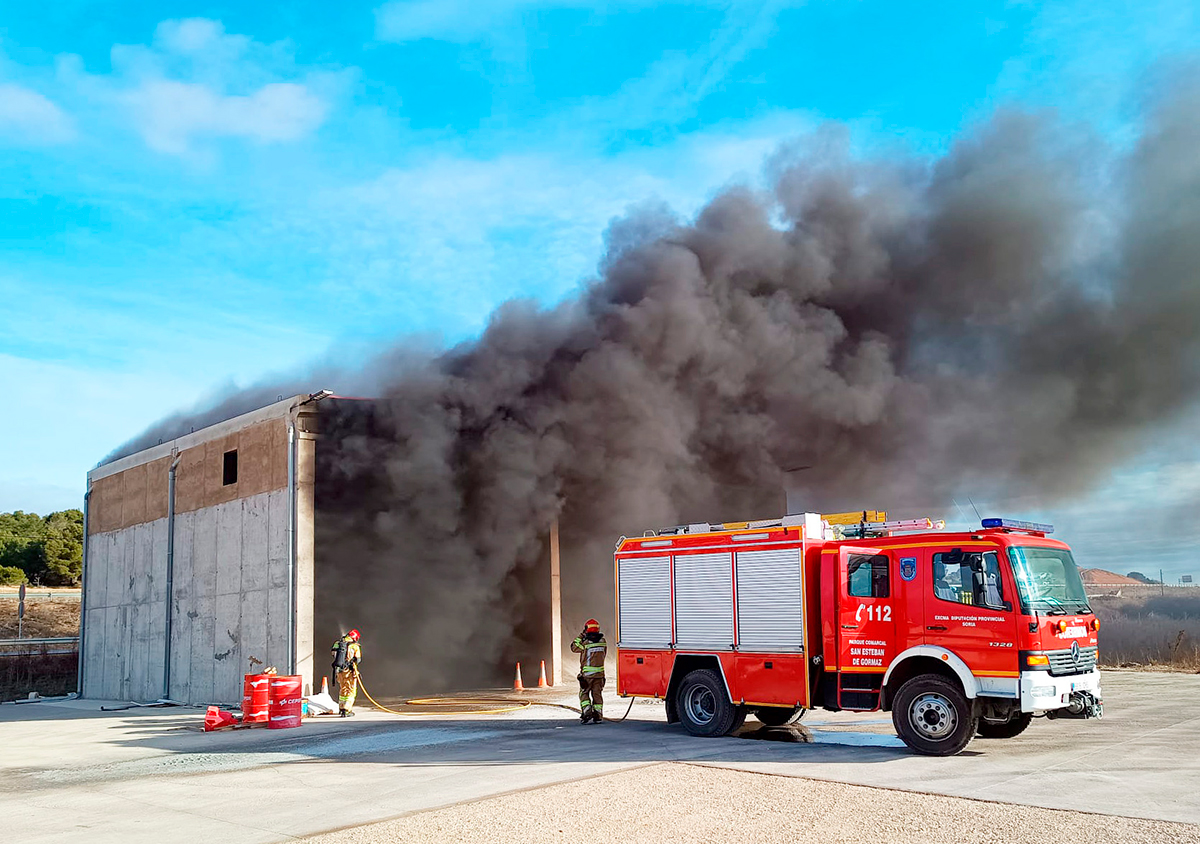 Los bomberos de la Diputación de Soria, del parque de la Ribera, extinguieron un incendio producido en una máquina mixta JCB dentro de la nave de conservación de carreteras de Matinsa, situada a la salida de San Esteban de Gormaz, en la carretera N-122, según recogió Ical.