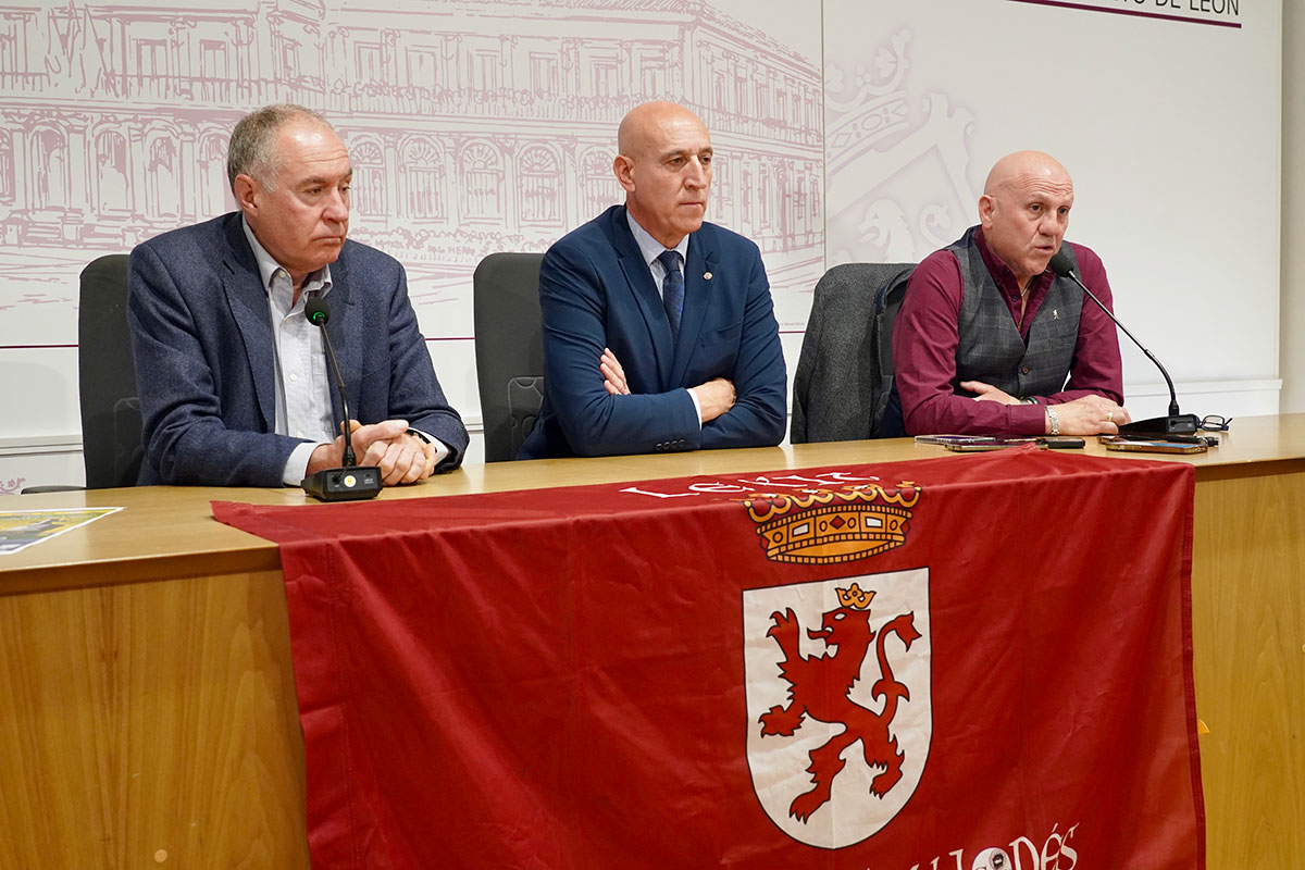 El alcalde acompañó hoy al portavoz del Grupo Municipal de Unión del Pueblo Leonés, Eduardo López Sendino, y Carlos González, conocido como Carlos Cerra, presidente de Conceyu País Llionés, en la presentación de la movilización, que partirá a las 12 horas de la plaza de Guzmán y discurrirá por la avenida Ordoño II, para concluir en la plaza de San Marcelo, donde se dará lectura a un manifiesto. Además, en la Plaza Mayor se colocarán letras gigante para conformar la palabra LEXIT, en alusión a la comunidad autónoma número 18 que reclaman los convocantes. Además, explicó Cerra, durante el recorrido se portará un féretro para simular “el enterramiento del País Leonés”.