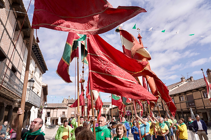 A las 10.30 horas, la plaza Vieja de Saldaña se llenó de vida con la Concentración de Pendones Concejales, un espectáculo visual liderado por los campaneros Villaltanos y los Dulzaineros de Vino Aquilino. Más de 30 pendones, representando a los pueblos de la comarca y a localidades invitadas de Burgos y León, desfilaron en una emotiva subida al Santuario del Valle, organizada por el grupo Pendón Concejal de Saldaña. A las 12.30 horas, la pradera del santuario acogió una misa concelebrada, seguida de la tradicional ofrenda de corderos, la subasta de brazos y una solemne procesión en torno a la ermita, momentos que resaltaron el fervor religioso y la unión de los asistentes.