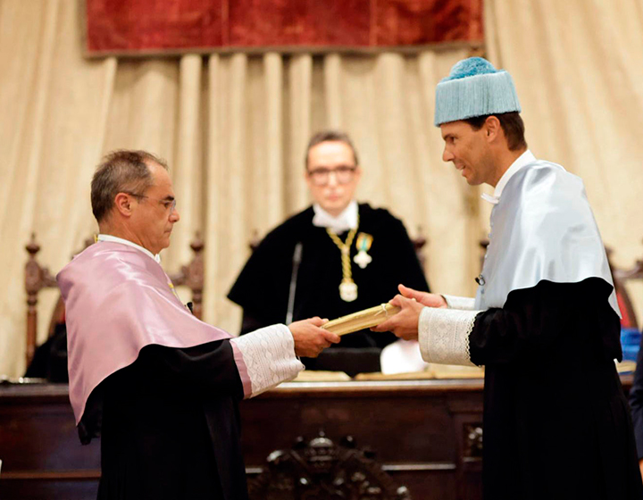 El rector valoró las lecciones de “supervivencia y mejora continua” que Nadal ofreció en cada torneo a lo largo de su larga y exitosa carrera deportiva, al tiempo que elogió “su capacidad de renacer con más fuerza” cada vez que la adversidad le puso a prueba. “Nadal representa la constancia y la excelencia a su nivel máximo, esa excelencia que la Universidad procura alcanzar en todas sus acciones. El camino académico no es fácil, requiere esfuerzo, trabajo y constancia. Usted nos ha enseñado que no hay que conformarse, que siempre podemos conseguir más”, añadió.