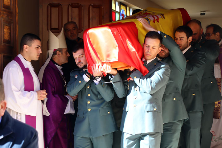 La localidad natal de la madre del agente despidió entre lágrimas y gestos de apoyo a su familia, al guardia civil, que deja viuda y dos niños pequeños. Compañeros del fallecido portaron su féretro, cubierto con una bandera de España, en una ceremonia presidida por el obispo de Astorga, Jesús Fernández.