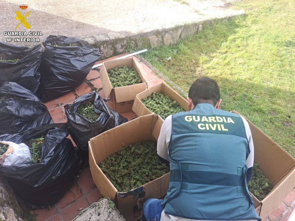 Los agentes de la Guardia Civil de Segovia detuvieron a tres hombres, de entre 30 y 48 años de edad, residentes en Madrid, como presuntos autores de delitos de cultivo de marihuana, tráfico de drogas y defraudación de fluido eléctrico y análogos entre otros, cometidos en la Comarca de Villa y Tierra de Fresno de Cantespino. Fueron intervenidos diferentes elementos y sustancias como una cuba de riego con bomba, once garrafas de fertilizante, 398 macetas con tallos. 39 lámparas, 41 transformadores, seis extractores, filtros de aire y otros elementos, así como un total de 36,61 kilogramos de cogollos de marihuana y otros 30,27 de hojas de la misma planta.