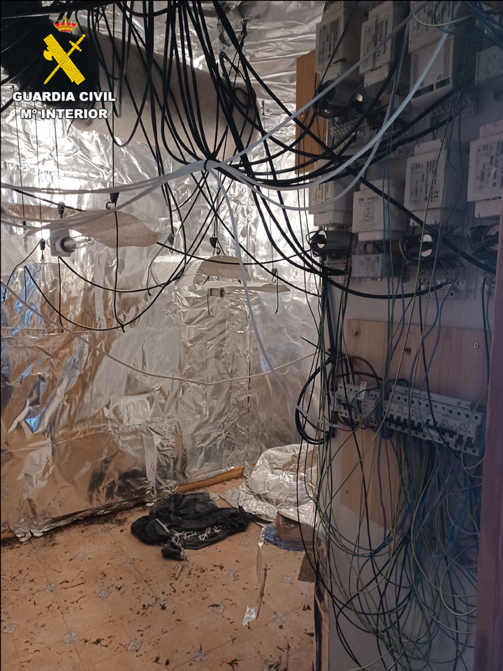 Fruto de las gestiones realizadas y de informaciones recabadas durante los servicios de seguridad ciudadana, se pudo averiguar la verdadera identidad de los implicados, a los que se detuvo. De todo se dio cuenta a la autoridad judicial, quien permitió la entrada y registro en la vivienda. Así, se descubrió que la vivienda había sido convertida en un sofisticado invernadero para el cultivo indoor de marihuana en sus diferentes fases de crecimiento. Además, en la zona del salón se observó un rudimentario sistema de vigilancia para dar seguridad a la instalación.
