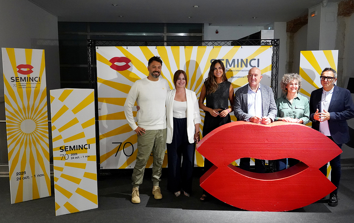 Ana Mª Hernández y Félix Rodríguez, responsables de PobrelaVaca Studio, presentaron hoy el cartel de la 70 edición de la Semana Internacional de Cine de Valladolid, que se celebrará del 24 de octubre al 1 de noviembre. La imagen, según explicó Hernández, parte de una figura geométrica como el círculo, “que se irá transformando en la mirada del espectador, como otras referencias como un rollo de celuloide que gira o un haz de luz”. Los creadores se han basado, detalló, en el arte psicodélico de los años 60 y 70 para dar forma a “una gráfica muy sencilla pero potente y dinámica, que se basa en la vivacidad y el movimiento, y en líneas geométricas muy potentes que permitirán aplicaciones muy variadas y diversas”.