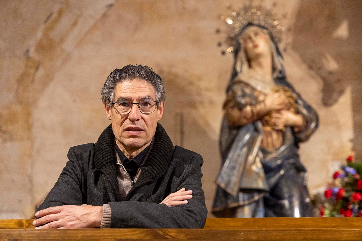 Habla, aunque reconoce no ser objetivo, de “la mejor virgen que hay en Salamanca”, esa Dolorosa de Montagut, capaz de hipnotizar con su mirada cualquier fría mañana de marzo en la penumbra de San Benito, qué no expuesta al reflejo de la piedra dorada de Villamayor en las calles salmantinas, en pleno esplendor de pasión. Un mensaje transcrito en arte escultórico, pero, convencido, se traduce desde un lenguaje divino. “El momento en que tú sientes algo por una imagen es porque yo creo que algo de espiritualidad debes tener dentro. Por eso se te enciende la chispa”, reflexiona.