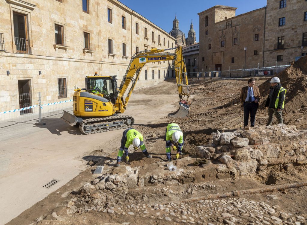 Susana Martín / ICAL. Las obras en la plazuela de San Bartolomé afloran nuevos restos del Convento de San Agustín, que albergó los restos de Fray Luis de León