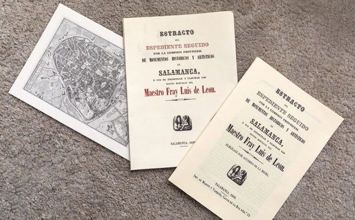Susana Martín / ICAL. Fascímil que reúne diversos documentos que acreditan las investigaciones llevadas a cabo por la Comisión de Monumentos al objeto de hallar y exhumar los restos de Fray Luis de León